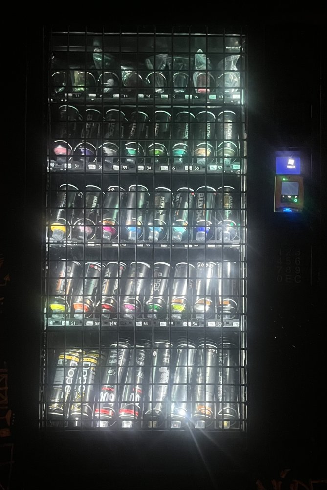 Do you need spray in the evening, on the weekend or outside the opening hours? No problem! New spray vending machine in Brno. You can find it at Kopečná 7, Brno – right next to GRAFF SHOP BRNO. Nonstop operation – 24/7. For cards and banknotes.
